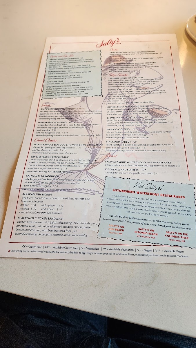 Salty's specializes in an array of seafood dishes that will tantalize your taste buds. Signature dishes like the Seafood Cioppino (a delectable mix of fresh seafood in a rich tomato broth) and the renowned Salty's Famous Seafood Chowder Bowl (garnished with luscious Dungeness crab) are just a glimpse of the delightful offerings available. The Blackened Halibut paired with a unique rhubarb-strawberry sauce captures a perfect balance of savory and sweet, showcasing the creativity that defines Salty's menu. Guests rave about the Lavender Honey King Salmon and the comforting Dungeness Crab Mac and Cheese, making it evident that every dish is crafted with care and quality ingredients.